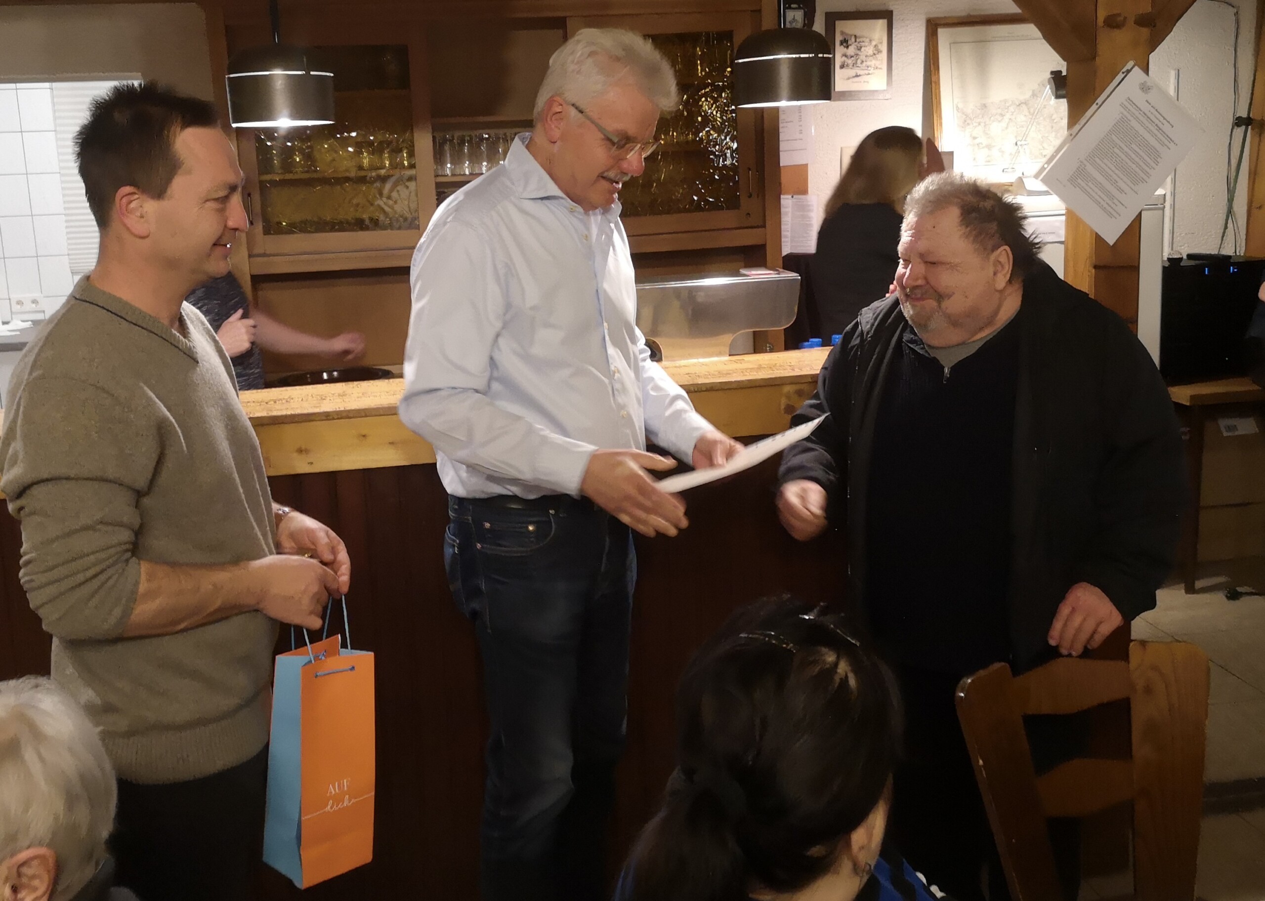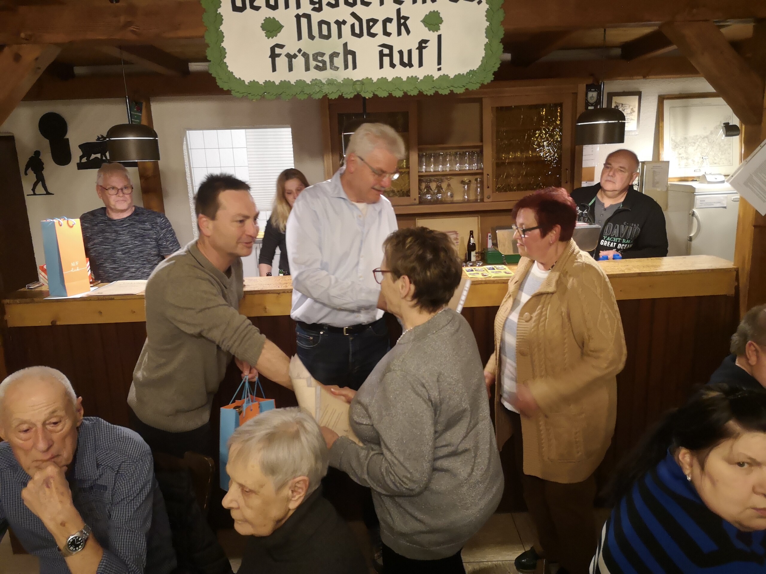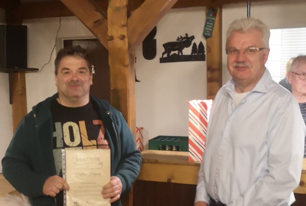 Im Anschluss nutzten die Ehrengäste, Bürgermeister Sebastian Schwarz und Tim Ross für den Ortsbeirat, die Gelegenheit für Grußworte, bevor ein besonderer Programmpunkt folgte: die Ehrung langjähriger Vereinsmitglieder. Für 60 Jahre Mitgliedschaft wurde Kurt Weber ausgezeichnet. Seit 50 Jahren gehören Wilhelm Reitz, Werner Schmidt und Klara Lotz dem Verein an. 40 Jahre Mitglied sind Alfred Rösser, Elke Rösser und Ingrid Wissner. Auf 25 Jahre Vereinszugehörigkeit blicken Ursula Müller, Werner Müller und Matthias Hofmann zurück. Die Vereinsvorsitzenden Ulrich Schmitz und Kai Schäfer überreichten den sieben anwesenden Jubilaren jeweils eine Urkunde, die Ehrennadel des Vereins sowie ein Präsent.